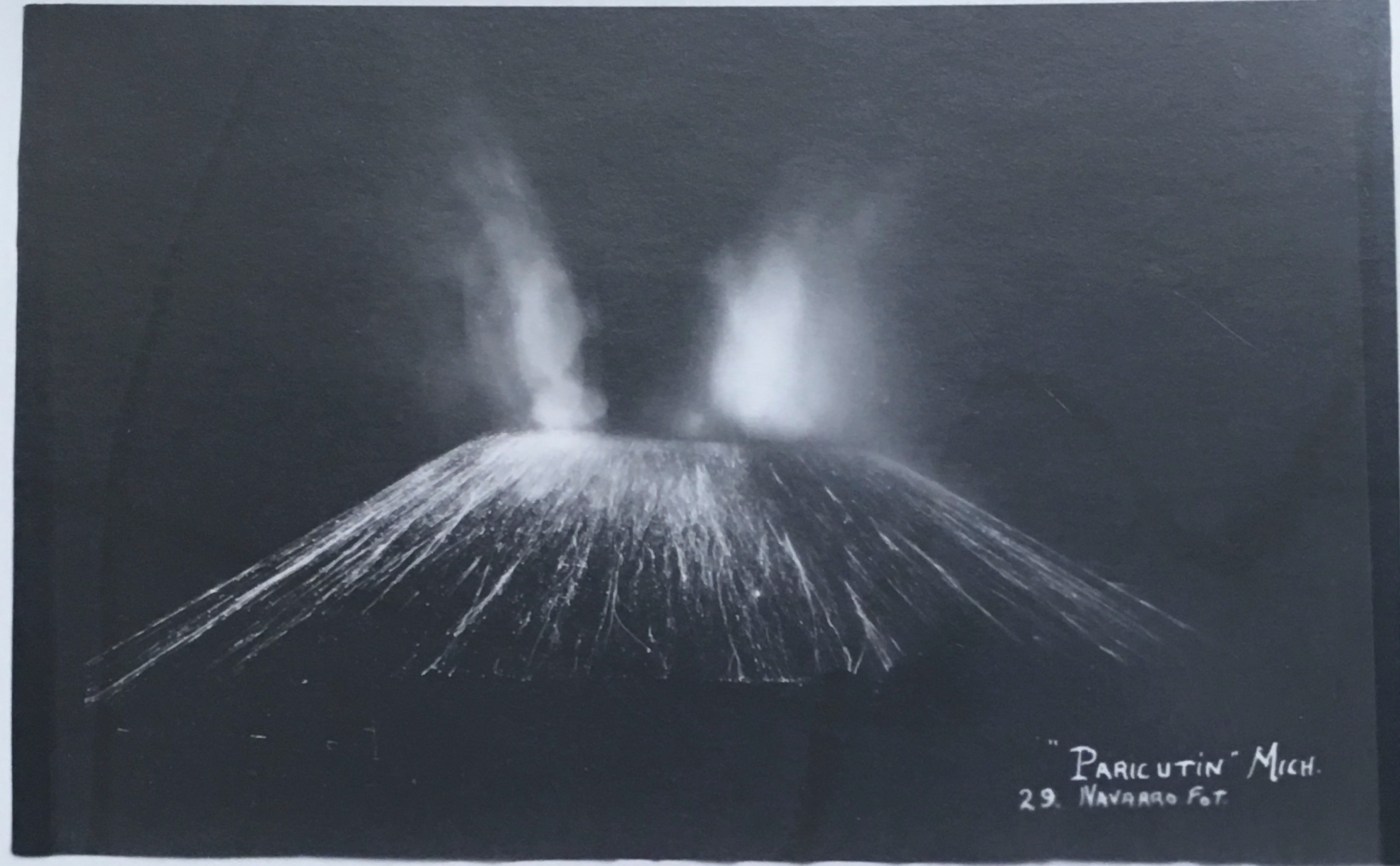 Featured image: Parícutin erupting with smoke drifting off lava flows and out of hornitos. Navarro, Postcard. Smithsonian Institution Archives, William F. Foshag Papers, 1923-1965 and undated, 7281, Box 9, Folder 7.