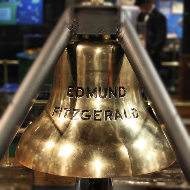 The Fitzgerald’s 200 lb. bronze bell was recovered on July 4, 1995. On display at the Great Lakes Shipwreck Museum.